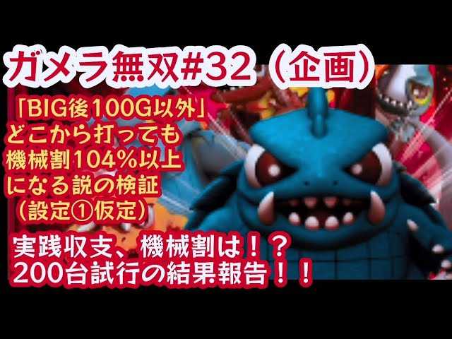 ガメラ無双32■祝!200台目到達!【パチスロガメラ】200台打った総収支、機械割は!? BIG後100Gの冷遇区間以外だけ回せば設定①機械割104.2%になるんじゃないか説の検証!総回転約7.5万G