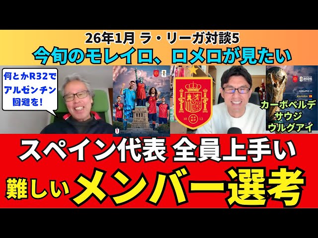 スペイン代表のW杯展望と懸念点。R32でアルゼンチンは避けたい。全員サッカーが上手い。誰を呼ぶ?どう使う?A.モレイロ、C.ロメロらサプライズ招集候補|26年1月 ラ・リーガ対談5 木村浩嗣×小澤一郎