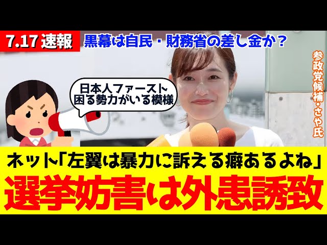 【殺害予告】参政党・さや氏に脅迫メール、金銭要求も...ネット「左翼はすぐ暴力に訴える。自民や財務省の差し金の可能性もあるよね。日本人ファーストで困っている政党は共産」#石破茂 #参院選 #財務省解体
