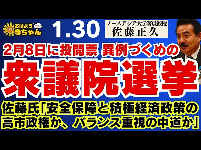 【異例づくめの #衆議院選挙】佐藤氏「安全保障と積極経済政策の高市政権か、バランス重視の中道か」【2月8日に投開票 】ノースアジア大学客員教授 #佐藤正久 氏【公式】おはよう寺ちゃん 1月30日(金)