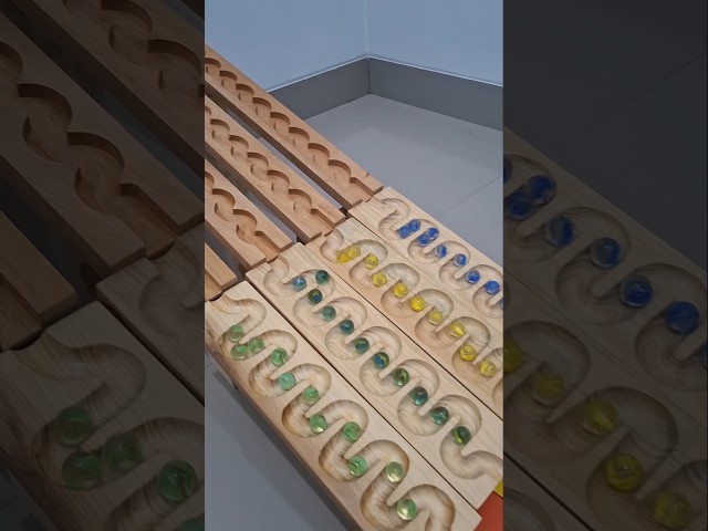 Marble Run ⭐️ Long winding wooden track, white marbles | マーブルラン ⭐️ 長く曲がりくねった木製のトラック、白いビー玉 #marblerun