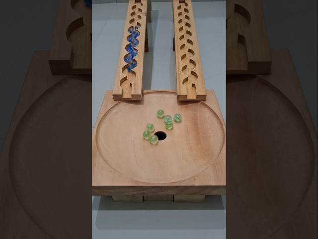 マーブルラン⭐️ 緑のビー玉、曲がりくねった木製のトラック、ボウルの穴 | Marble Run⭐️ Green Marbles, Twisting Wooden Tracks, Bowl Holes