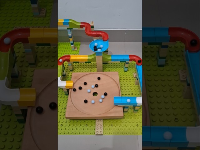 マーブルラン⭐️ 白黒のビー玉、レゴトラック右左穴ボウル |Marble Run ⭐️Black and White Marbles, Lego Tracks Right Left Hole Bowl