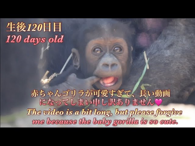 両親が見てる中、まるでつかまり立ちの練習してるみたいだった赤ちゃんゴリラのサンタロウ♪⭐️Gorilla【京都市動物園】Santaro holding onto the edge of the box
