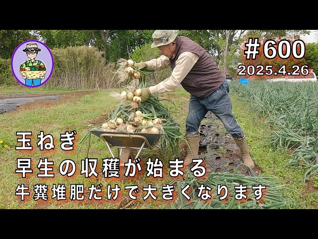 【いんげん、とうもろこし、玉ねぎ、春大根】第598話、マルチ張り(いんげん、とうもろこし)、玉ねぎの中生のマルチ剥がし、玉ねぎの早生をちょい収穫、100均春大根が発芽。 #オーガニック栽培 #家庭菜園