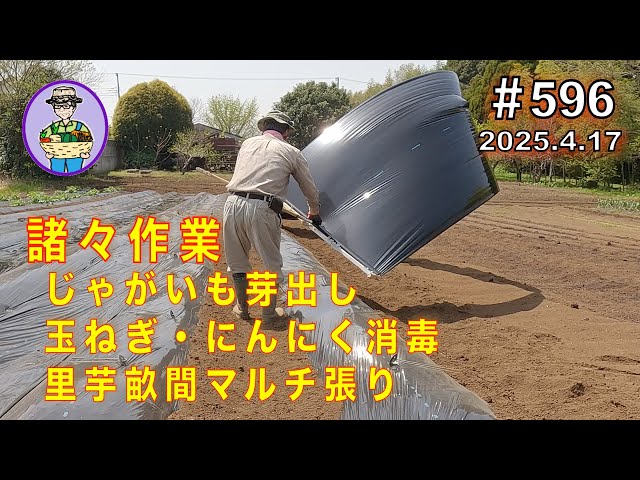 【かぼちゃ、じゃがいも、いんげん、玉ねぎ】第597話、諸々作業(かぼちゃ:畝立てとマルチ張り、じゃがいも:畝間中耕、いんげん:元肥散布、玉ねぎ中生:ちょいマルチ剥がし) #オーガニック栽培 #家庭菜園