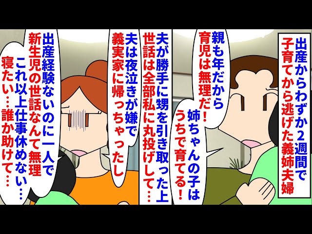 【漫画】夫「夜泣きされると仕事に支障出るから実家帰るわ」出産からわずか2週間で子育てから逃げ失踪した義姉夫婦→夫が勝手に新生児の甥を引き取り私に全部丸投げで義実家に帰り…(スカッと漫画)【マンガ動画】
