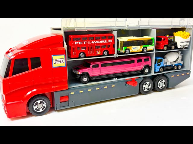 はたらくくるまのトミカのミニカーを開封してコンボイへ収納します☆Work car's Tomica miniature cars are opened and stored in the convoy