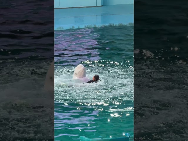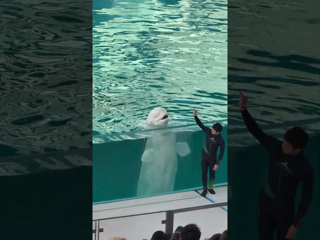 【日本 関東の水族館 横浜・八景島シーパラダイス】かわいいシロイルカ・ベルーガ (シーマちゃん) のダンスパフォーマンス イルカショー アクアミュージアム4F ライブスタジアム ※2024.11.17