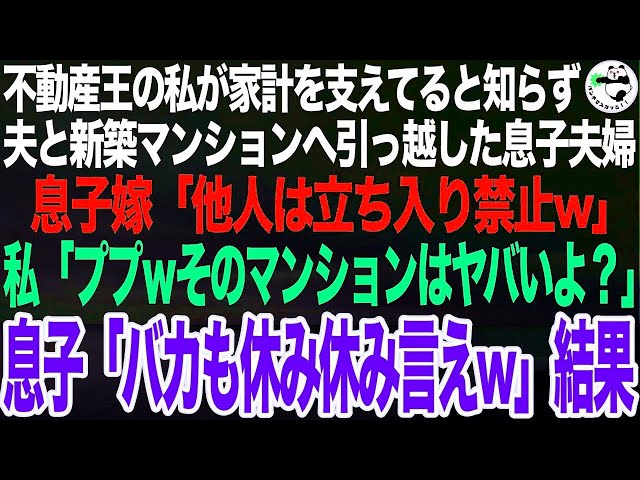 不動産王の私が家計を支えていると知らず夫と新築マンションへ引っ越した息子夫婦。嫁「他人は立ち入り禁止w残念でしたー!」私「ププwそのマンションはヤバいよ?w」息子「バカも休み休み言え」結果【スカッと】
