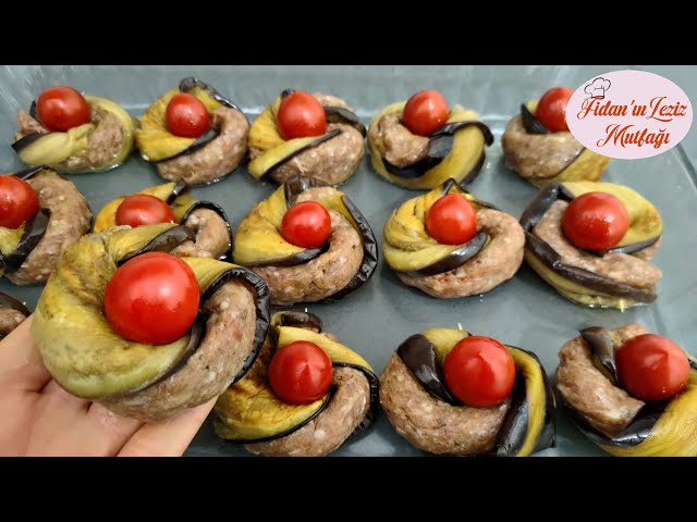BÖYLESİNİ HİÇ GÖRMEDİNİZ✔️FARKLI SARMA YÖNTEMİYLE PRATİK VE LEZZETLİ KÖFTELİ PATLICAN KEBABI TARİFİ💯