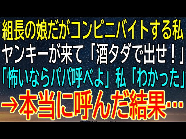 【スカッとする話】「パパに電話しろよw」とコンビニで絡んでくるヤンキー。私が本当に父(実は組長)を呼ぶと、若頭含め100人が集結!→父「娘が世話になったな」とヤンキーを”社会貢献”させた話【スカッと】