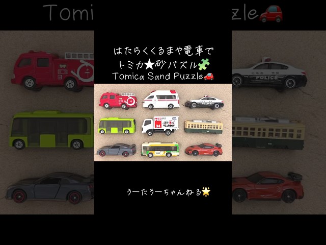 トミカ★はたらくくるまや人気の緊急車両と同じ砂の形を探す、砂パズル🧩Tomica Sand Puzzle. Find the same sand shapes popular working cars
