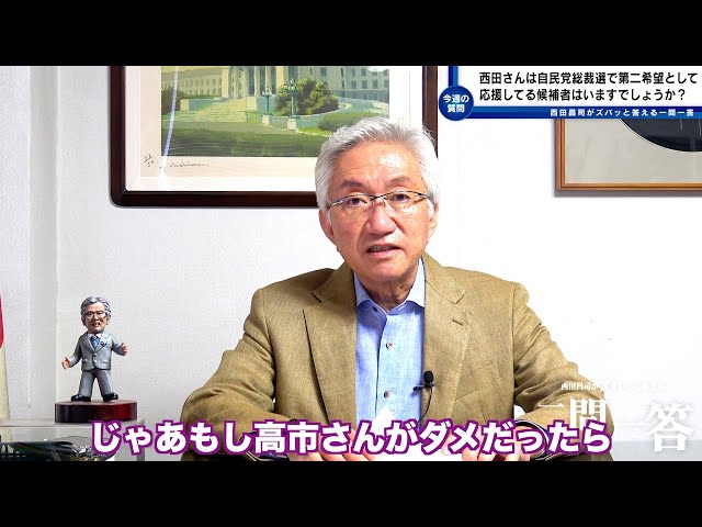 「総裁選は私的には第一希望は勿論、西田さんと同様で高市早苗さん、第二希望は茂木敏充さんを応援しています。第二希望として応援してる候補者はいますでしょうか?」西田昌司がズバッと答える一問一答おまけ