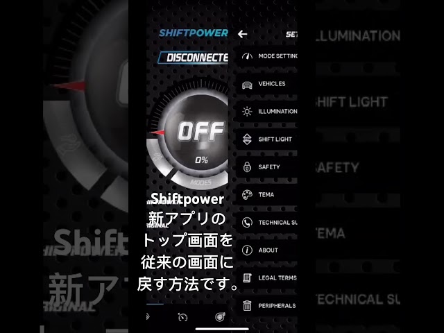 Shiftpowerのアプリがバージョンアップされました。操作画面に新しいデザインが追加されましたが、従来の画面に戻す事が可能です。セッティング画面THEMEよりModernのチェックを消して下さい。