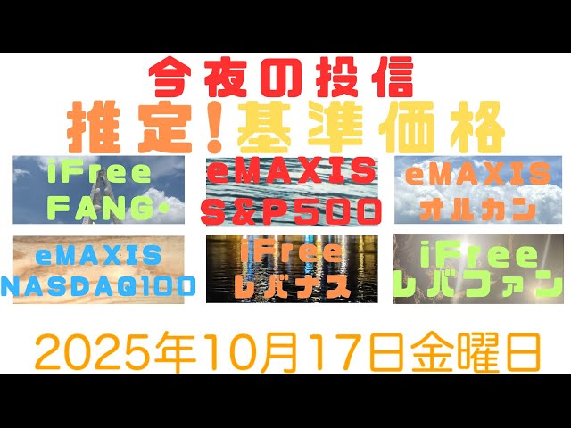 10/23 ゴルプラゴルナス予想開始!楽しんで行こ! 今夜の投信の推定基準価額! FANG+,eMaxisSlim S&P500 NASDAQ100 オルカン,iFreeレバナス,レバファン,Zテック