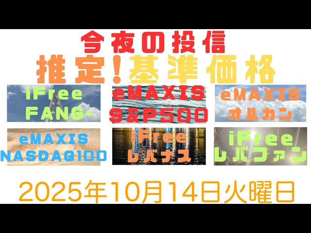 10/10 ハイテク投信また最高値だ!お金が増えすぎ!今夜の投信の推定基準価額! FANG+,eMaxisSlim S&P500 NASDAQ100 オルカン,iFreeレバナス,レバファン,Zテック