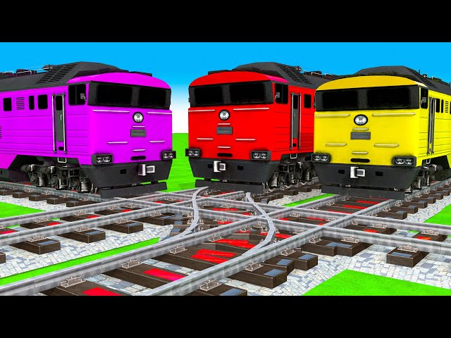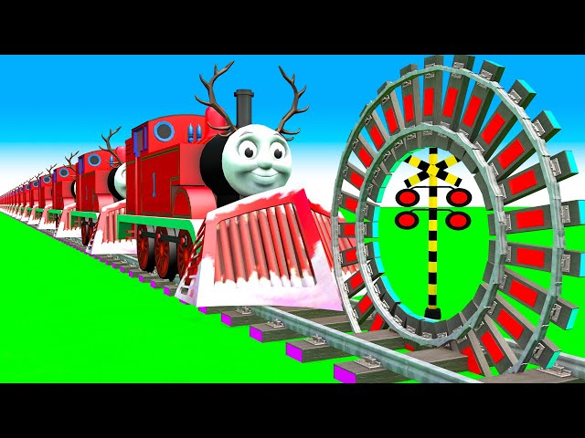 【踏切アニメ】でこぼこの電車の曲がり カラフル Pacman vs 5 Train Crossing 2025🚦Fumikiri 3D Railroad Crossing Animation#1