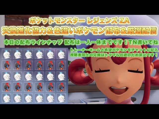 【ポケモンZA】色違いポケモン配布&ポケモン交換進化協力&厳選配信(pokemon legends z-a)【PokemonZ-A】※ネタバレ注意!色違い配布ポケモンはラインナップ内から一人一体まで!