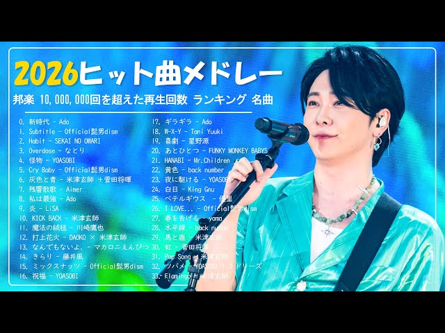 【最新曲 】 👑 2026ヒット曲メドレー 🍁 名曲Jpop メドレー 2026🍁J-POP 最新曲ランキング 邦楽 2026 🍁 YOASOBI、優里、 あいみょん、米津玄師、Creepy Nuts