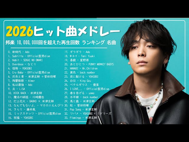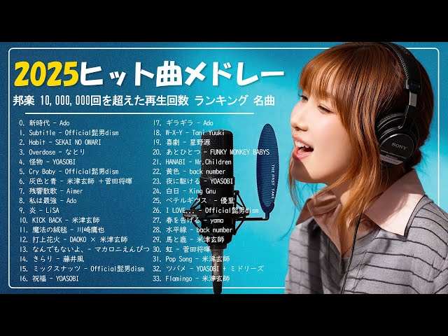 『2025最新版』2025ヒット曲メドレー 🌸 名曲Jpop メドレー 2025🍁J-POP 最新曲ランキング 邦楽 2025🎶 YOASOBI、優里、 あいみょん、米津玄師 、宇多田ヒカル、ヨルシカ