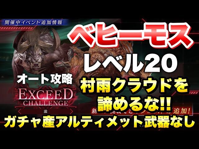 【FF7EC】エクシードチャレンジ 激 ベヒーモス レベル20 村雨クラウドを諦めるな!オート攻略!ガチャ産アルティメット武器なし!2.5周年 【エバクラ】ファイナルファンタジー 7 エバークライシス
