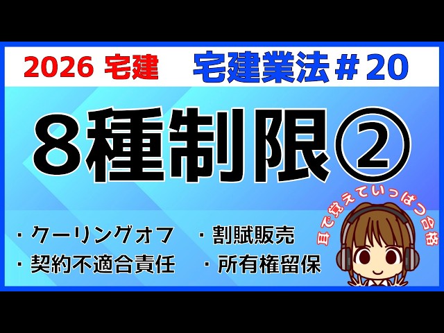 宅建 2026 宅建業法 #19【8種制限1】宅建業者自ら売主・損害賠償額の予定等の制限・手付金の性質と額の制限・手付金等の保全措置・自己の所有に属しない物件の売買契約締結の制限・数字のごろあわせアリ