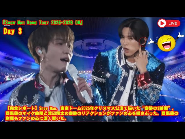 【完全レポート】Snow Man、東京ドーム2025年クリスマス公演で描いた“奇跡の3時間”。目黒蓮のマイク故障と渡辺翔太の奇跡のリアクションがファンの心を揺さぶった。目黒蓮の謝罪もファンの心に深く響