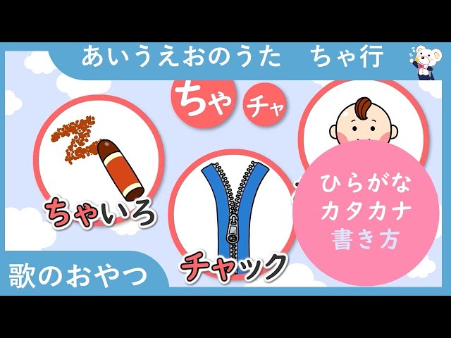 【漢字版 読み方】あいうえおのうた ちゃ行! ちゃ行の言葉 ひらがなの歌で、ちゃ行の言葉と書き方を覚えよう 歌のおやつ ひらがな 漢字 勉強 学習 濁音 アイウエオ ちゃ行 ちゃちゅちょ チャチュチョ