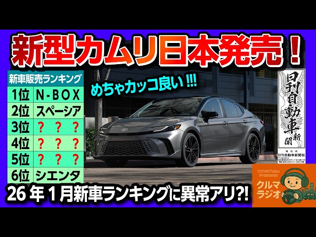 【新型カムリが日本発売!】めっちゃカッコイイ! 2026年1月の新車販売ランキングに異常アリ?! 意外な車が上位ランクイン! 2026年注目の車は? 車で起きたヤバイ話【日刊自動車新聞×クルマラジオ】