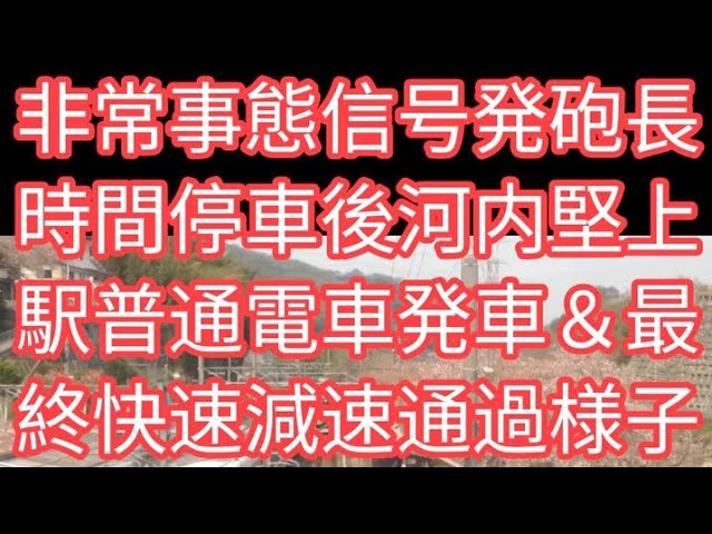 【激写】!【河内堅上駅】【非常】【事態】【通報】【信号】【発砲】【普通】【電車】【長時間】【停車後】【発車】→【後続】【快速】【列車】【減速通過】【様子】【JR酉日本】【大和路線】【大阪府】【柏原市】