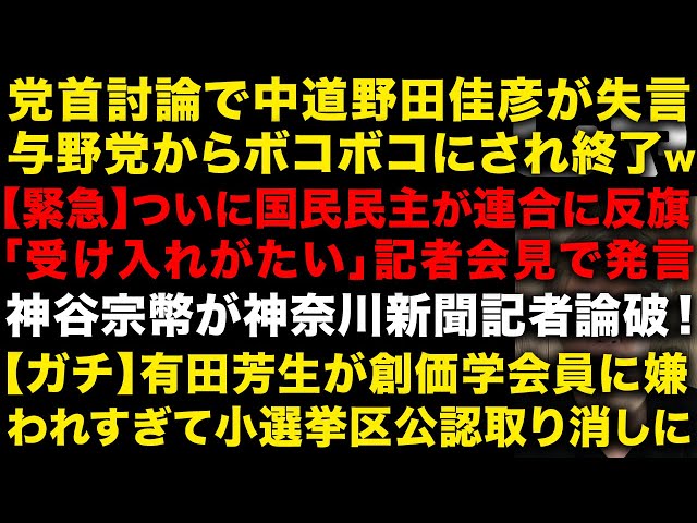 【朗報】党首討論で中道の野田佳彦が与野党からボコボコにされ無事終了する 国民民主が連合に反旗で「受け入れがたい」 参政党・神谷宗幣が神奈川新聞記者を論破 有田芳生創価学会に嫌われすぎた男(TTMつよし