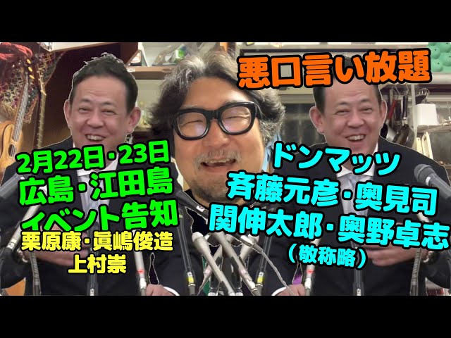 江田島イベント W/栗原康・眞嶋俊造・上村崇|ドンマッツ氏の中学生新聞批判を批判|斉藤元彦と代理人、奥見司氏の話|未成年への性的暴行で逮捕された関伸太郎(浄霊ヒーリング協会)と奥野卓志氏(ごぼうの党)