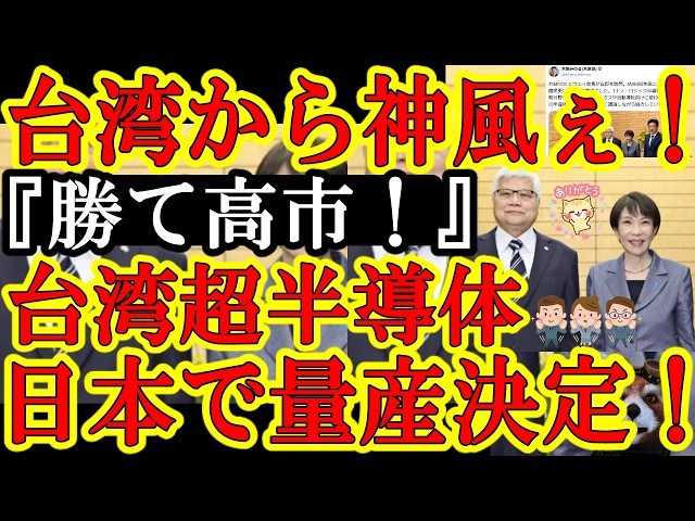 【なんと台湾から高市自民党に強大な神風キタぁ!台湾TSMC『衆院選に勝って来い高市総理!TSMCの最先端半導体を日本で量産するからぁ!』超絶怒涛の大支援だぞコレぇ!】日本製造業の大躍進が確定だぁ!この